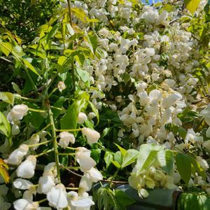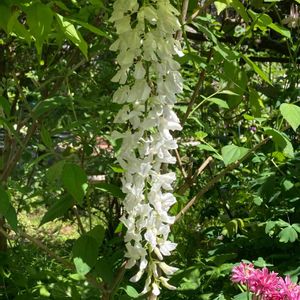 3年前にあしかがフラワーパークで購入した白藤、今年も咲きました🤍 今年の課題は、いい加減藤棚を作る事です😅 蚊が出る前に作ろうと思っていましたが、昨日到頭食われました😆