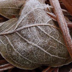 枯れ葉と氷の芸術✨ 最近、春への憧れの暖か写真が多いので、たまには現実を😅
