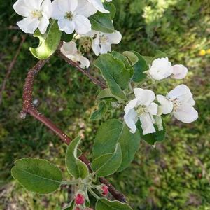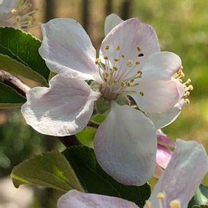 今日のお花は「なし」ということですが、なし農園にはお邪魔できないので、代わりにいつもの緑道で満開になっていたリンゴを投稿しますね。‼️💕💕 このリンゴの木2~3年前には、もう枯れるかと思っていましたが一昨年位から少しずつ花をつけ始め小さな実も1~3個付けていました。今年はお花が元気に咲いているので実ももう少し期待できそうです。‼️💕💕🐶🐾🐶