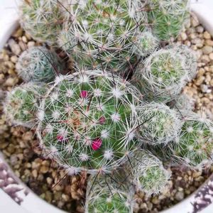 いい感じの鉢を見つけたので、 マミラリア 赤花銀手毬の植え替え。 将来的には赤花銀手毬丼が出来そう🥢 育成メモ: マミラリア 赤花銀手毬 Mammillaria gracilis 夏型 冬 : 安全は室内、水絞り気味で頑張れば外の屋根下での越冬も可能