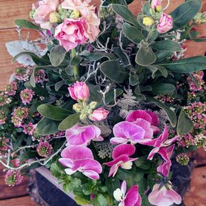 ネットで購入したものの、使い方がイマイチわからず数カ月放置していたバスケット型の鉢 やっと日の目を見ました✧** 春は水切れしやすそうなので、大きくならないプリムラジュリアンをメインに寄せ植えしてみました 正解がわからない💦これでいいのかな? 寄せ植えはあまり得意ではありません😅 でも、色合いは気に入っています💖 ①② ・プリムラジュリアン ・葉牡丹クラシカルボンボン ・プリンセスクローバー ・スイートアリッサム ③シクラメンドラゴン の寄せ植えのバコパ コピア の花数が増え、仕込んでいたムスカリの芽も出てきて、鉢がにぎわってきました✨ ④ミニ薔薇グリーンアイス はいつもより大きめの花を咲かせて、カワイイです💖