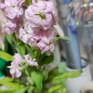 写真だとピンクに見えるけど本当は紫のストック💜 丈夫で花付きもいいさ長〜く咲いてくれそうです💜
