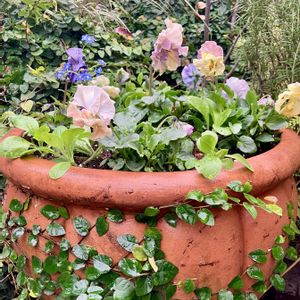 今日の庭から… 15:45〜15:47 フェデネージュ(6株)に零れ種の 忘れな草を足して寄せ植え 今月もよろしくお願いします😊
