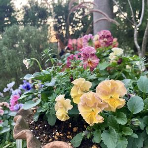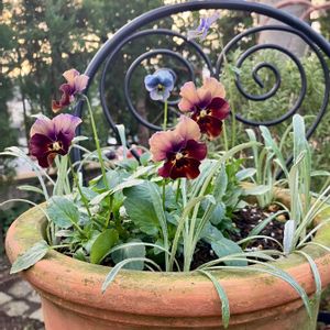 今日の庭から…② 10:44〜15:26 アップデートしたらカメラの使い方が? 個性的なパンジービオラを練習台に😅 ❶ 巻きすぎでは..😘 ❷ 彩色兼美..⁈ ❸❹ 2桁ビオラ..たぶんメゾンドビオラ ❺ 可愛いというか逞しいというか..🤔