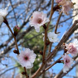 今年の春咲いていたおしどり桜🌸 今は、枯れ木に雀がいっぱい。 母があげる餌を待ってる。 「キュン、チュン」と声をかけて 餌台に餌を撒く。 「うぢの雀だぁ〜」と、目を細めて 眩しそうに笑う母の姿を、目に焼き付けて 帰路に着きます。