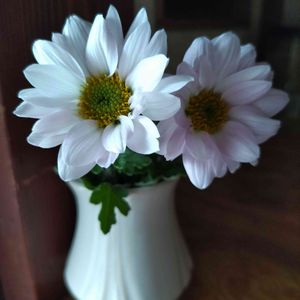 天候が悪いので寒菊を切り花にしました🤗同じ根っこから咲いていたのに色白さんと薄ピンクさんです💗かわいい双子ちゃん❣️