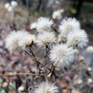 寒いので…ノコンギクの冠毛✳️✳️✳️🍂 野菊のヨメナとノコンギクはとても良く似ているけど、果期になるとヨメナは冠毛がほとんど目立たないので一目瞭然! この種子に着いてるフワフワの毛は萼が変形したものだったのか🤔