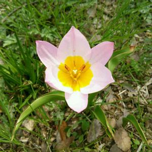 原種チューリップ ライラックワンダー🌷💞 ぱっかーん咲いています😄💡 ピンクとイエローのツートンカラーが 元気いっぱいのイメージ🙌🎵