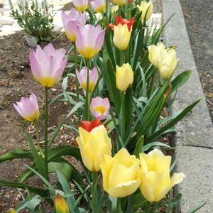やっと!😍 チューリップが咲いてきました 可愛い~♡八重咲きだった~♡ 名前は表記なくてわかりません…💦 球根から植えると長く見守るから 咲いてくれると嬉しいですねー(笑) 今の季節は毎日変化が見られて楽しいです♪