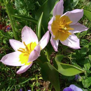 こんにちは(*´∀`)♪ 日曜日に… 🎊めでたく🎉咲きました🤣✨ 初めての球根シリーズデス🌼 チューリップ🌷の原種とかで… 『ライラックワンダー』です(^o^)/ 小さいけれど開くと凄い✨存在感ですね😆💕 球根✨がこんなにワクワク💕ドキドキするなんて…🤣 何事も経験してみないとわからないですね😀 今年の秋には何を植えようかなぁ➰🌼