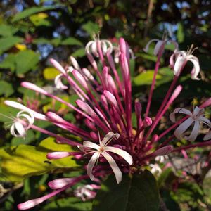 このお花の名前おしえて? と伺った数分後から クレロデンドルム・クワドリロクラレ (学名) スターバーストブッシュ カオウ(華王) と次々とコメントでお応えいただきました。 GSネットワークの凄さ改めて知りました。 皆さま本当にありがとうございます😊💓 今日の午後出先(法事の親戚宅)で、綺麗なお花に出会い、(冬の花火)以外の名前が分からないと言うことでGSユーザーさんにその場でお尋ねしました。 まさかその日のうち、しかも数分後に教えてくださり海を越えて他の都道府県はもとより海外のユーザーさんからも‥ 感謝💓感謝の1日の終わりです🙇♀️ 2022.1.22 沖縄県南城市玉城にて撮影