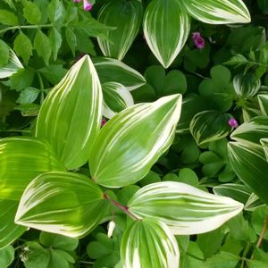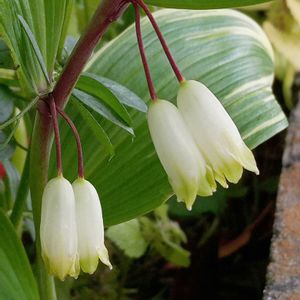 アマドコロ(甘野老) 今日2枚目の投稿のナルコユリと比較するためお蔵入りしていたアマドコロを引っ張り出しました。 1️⃣佐倉くらしの植物苑 2025.426 2️⃣3️⃣4️⃣5️⃣我家の斑入りアマドコロ 茎は角張り、触るとざらざら? 花柄の先に1〜3個の花。 葉は幅広の長楕円形。 開花期は4〜5月, 草丈は50〜80cm
