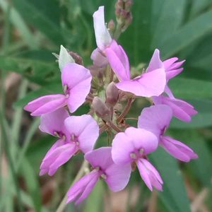 先月草刈りをされたと思っていたけど、小さいながらアレチヌスビトハギが花を咲かせていました‼️ 目のような黄緑色の2つの斑紋が特徴です。 もう少しするとどこにでも見られますが、初物は嬉しいですね❣️