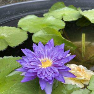 おはようございます。 少し蒸しっとしていますが、静かな土曜日の朝です。 昨日洗剤を切らしてしまい、急いでドラッグストアへ。 途中の遊歩道の脇に、近くのクラブの方たちが作ってくださった花壇があります。 その一画に水を張った鉢が置かれていて、熱帯睡蓮が咲いてました。 紫色のお花が落ち着きを感じさせてくれます。 🏷️美しく青きドヨウ、参加します。