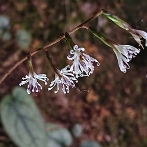 マンバテイショウソウ 牧野植物園 11/26 キク科 四国(高知県)、九州(宮崎県、熊本県、鹿児島県)の林床に希産し、台湾、中国(南部)にも隔離分布する多年草。葉柄に褐色の長毛が密生する。和名は花がテイショウソウに似て葉が卵形で全縁である事に由来する。 絶滅危惧I I類(環境省)。絶滅危惧 IA類(高知県) こんばんは 何年か前にもpicしましたが背が高く花はキッコウハグマよりもまだ少しちいさいのです💕 今回は葉は諦めました💚 竹林寺にキッコウハグマが咲いてるという事は植物園のマルバテイショウソウも咲いてると思い植物園の中にも入ってきました💓 小さな花が二つだけ咲いててくれました♥️