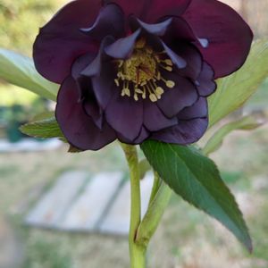 クリスマスローズ ブラックスワン (ミヨシ) 4/4 開花🎉 やっと咲きました、我が家に2つあるブラック系の1つです。 内側のヒラヒラがSexyです😁