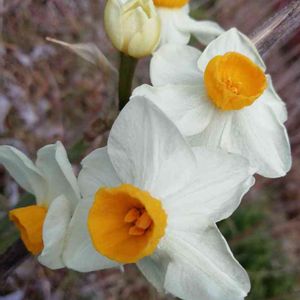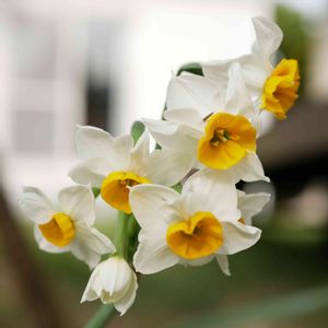 いつも散歩コースで、キレイな水仙に出会いました。 💛💛💛💛💛💛 【ニホンズイセン(日本水仙)】 《分布》 原産国は地中海沿岸で、日本へは中国から伝来したと思われ、本州の関東以西、四国、九州の海岸に野生化している。 《特徴》 古くから親しまれてきた房つき水仙。 芳香があり、日本に野生化し馴染み深い水仙。 《高さ》20~40cm 《花被弁》 わずかにクリーム色を帯びた白色で、平開する。 《副花冠》 のど(黄色の部分)の部分にある副花冠は黄色で高杯。 《花径》3~4cm 《花期》12~4月