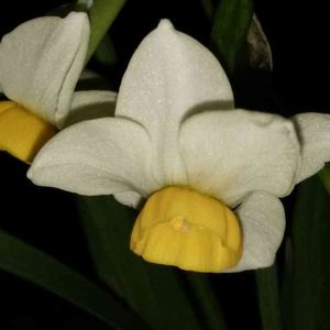 美しく咲いたニホンズイセン、一番乗り。 ヒガンバナ科スイセン属。 家でも、スイセンがあちこちに咲きますが、これはクリスマスツリーの下に咲いているもので、一番乗りです。 日本らしさが素敵な、房咲きスイセン。良い香りがし、天然香料として、香水の原料になっているとのこと。 6枚に分かれた花びらと、中心に筒状の花びらがあり、6枚に分かれている花びら(白の部分)のうち、外側3枚は萼(がく)で、内側3枚のみが花弁とのこと。二つをあわせて花被片(かひへん)と呼び、中心にある筒状の黄色の部分は副花冠(ふくかかん)と言うそう。 毒があり、葉が似ているからといってニラと間違って食べると大変! 白のスイセンの花言葉:尊敬、神秘。 学名の由来となった「ナルキッソス」という美少年にまつわるギリシャ神話のエピソードから、ナルシストという言葉もよく使われますね。 美しいですよね。