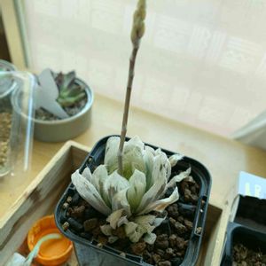 この子、ご近所で売られていて思わず買ってお持ち帰りしちゃったのですが、ハオルチア …⁇なのかしら⁇ 色も…白っぽい上にシワシワで💦 大丈夫なのでしょうか…⁉️