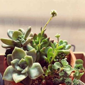 多肉植物ちゃんの先端に、なにやら袋みたいのがたくさんできてる、、、。 これ何だろうー??