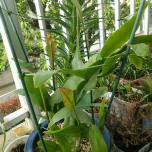 ホームセンターで、値切りされてボサボサの頭だったので…( ゚д゚)連れて帰って来たんです… 名前がわからなかったので、どなたか教えて頂けたら嬉しいです(^^) 当初、2本が小さな鉢に入って根っこが下からはみ出ていたので、綺麗に分けて別々の鉢に植え替えました。 このダラーンとした髪は?どうしたらいいでしょうか(*_*)? よろしくお願いします。