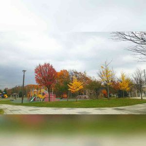 〈🍁紅葉 黄葉 褐葉🍂10月 北国〉 10枚目 子供たちが まだ来ていない公園 part2 子供は葉っぱの色より 遊びに夢中だろうけど 大人になるとこの美しさに気が付く時がきっと来るのでしょうね!☺