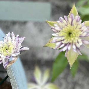 クレマチス ビエネッタ 枯れかけて一時はどうなるかと心配しましたが、見事に復活してくれて2輪咲いてくれました あと蕾が3つあります 小さくて可愛い花です😊