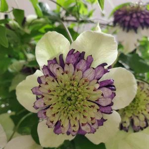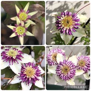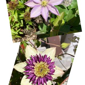 薔薇🌹と同じくクレマチス💠も花盛り😍 でも~、、、 去年、苗でお迎えした ビエネッタの株に違うお花が👀‼️ なにやら白万重に似ている⁉️ 枝変わり? どなたか詳しい方、教えて下さい🙏