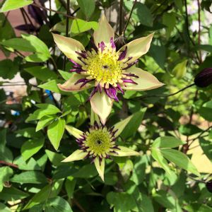 おはようございます😊 クレマチス ビエネッタ ぷらんぷらんしたりお星さま🌟みたいに輝いてたくさん咲いてくれています。