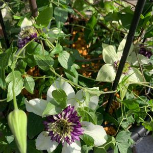 💜クレマチス ビエネッタ💜 すっごいの… お花が、ゴージャスなの… 白い花びらに見える萼片と紫の花弁に変身した雄蕊… 暫し見とれて動けなかった 美しい✨✨✨ そして、何てお上品✨✨✨ ちょっとググろ… なになに、 耐寒耐暑、四季咲き、新旧枝咲き、 日向、半日陰、水やり普通 こんなに凄いお花咲かせてるのに〜 こんなに好条件なの〜??? その場で検索結果にひとり言🌀 怪しい… ゴージャスなお花ってお★様確率高いよねぇ って、私のせいか💦 そこへ、夫がやって来て… 買わないの?って だってね、ちょっとお高いの( ¯•ω•¯ ) と言ったら 日々の孫守りご苦労さん! と、買ってくれたーー👍 ハイ、皆さん! 大きなドスの聞いた声でご唱和下さい! だってね、ちょっとお高いの(●`ε´●) 恐喝かっ🤣🤣🤣