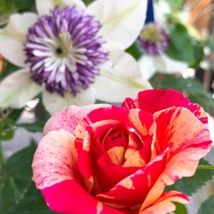 そしてビエネッタと共にお迎えした ミニバラ🌹 見た瞬間💘を射止められました笑 私ちょっと派手目な子が好きなんです❤️ 毒々しい色合いが好き😂 もちろん単色の子も好きですが🥰 でも先日お迎えしたばかり… 一旦やめましたが、きっと今日お迎えしなかったら、明日も来る事になるでしょう😂 一期一会を大切に❤️ とお迎えしてきました💘