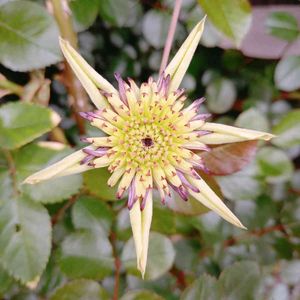 クレマチスビエネッタ 雨か気温の影響か花びらが丸まってます。 せっかく咲いたのに💦