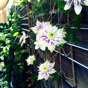 ビエネッタです💠 7年くらい前に花屋さんで出会ったクレマチス✨ 冬には白い花が咲くんですよ 霜がおりてもちゃんと春にたくさんの芽を出し、たくさんの花が咲かせてくれて💚 大好きな花です😊