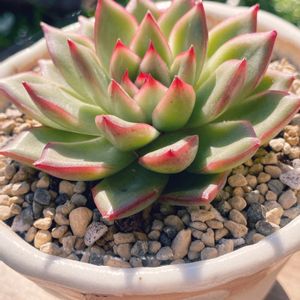 こんばんは(*^▽^*)ノ * * 先週お休みの日に 初めてソシオさんに 行って来ました🚘 * * 久しぶりに生で多肉ちゃん見て 狩った気がする(o´罒`o) 6個GETした中の1ッ👍 メキシコローズ❤️ * * ふちがピンクになってきてるから、 綺麗に紅葉すれば、 絶対可愛いくなると思って(*˘︶˘*).:*♡ 名前にローズって、 付いてるのも、なんか 惹かれちゃう🥰