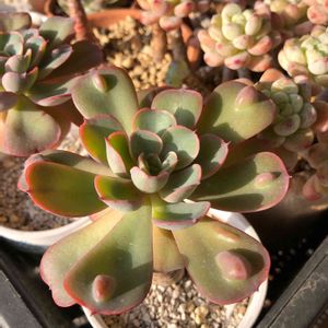 本日も多肉日和☀️ 朝から植え替え、頑張ってるよ💪 狩ったときはミドリンやたけど💦 縁取りが赤くて可愛いわ😍💕