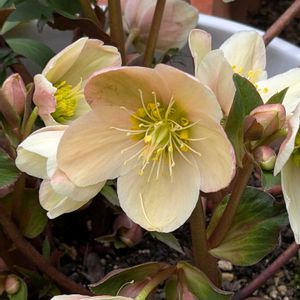 おはようございます☀寒波って聞いてたのに日中は日差しで温かくてオリエンタリス系のクリスマスローズたちも咲き始めてくれています😊 1枚目:加藤農園のプリマヴェーラゴールド。でも非認定らしいです😭かわいいので自分的には認定、非認定はあまり関係ないかな✌️ 2枚目:ウィンターシンフォニーのオーレア系のアプリコットdd 3枚目:オーレア系のイエローss。元気がでるビタミンイエロー 4枚目:ミヨシのブラックパール