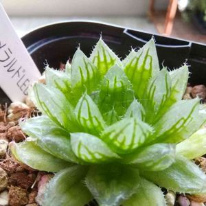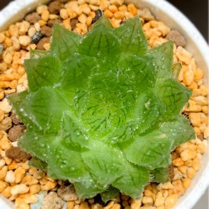 繊細な葉がロゼット状に広がり、窓がとても美しいハオルチア。 こちらは比較のため、ゼオライト+セラミスで鉢植えしています。緩効性肥料を施し、ごく薄めた液肥のミストを時々。 外側の葉が、枯れるか枯れないかくらいの水やりで様子をみています。
