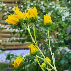 🌱ゴールデンピラミッド🌱 ヤナギバヒマワリの園芸品種です。 常緑性多年草、耐暑性、耐寒性が高い。 よく日の当たる場所が良く、地植えなら肥料はいらない。 花期は9〜10月。 オープンガーデン仲間のお庭に咲いていました。見事に1m以上も伸びて見応えがあります。 広いお庭でお日様も風通しも抜群。羨ましい限りです。 🏷️黄金色の金曜日 🏷️金曜キラキラ 🏷️2023小さな秋みつけた に参加させていただきます💕