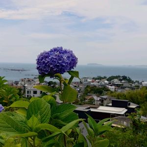 今日のお花:アジサイ 神奈川葉山にあるあじさい公園 アジサイと海、江の島です! 海とアジサイ素敵な組み合わせです💕