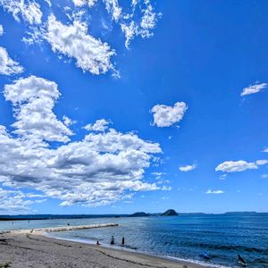 🌊🌊🌊 久~~~しぶりに見れた故郷の海 うれしくて🤗🤗🤗 1️⃣ 海 2️⃣ うみ 3️⃣ う〜〜みぃ 1️⃣ ⛰️立山連峰が見えなくて ☁️☁️☁️☁️☁️でした。 :8月17日 追記: いま見たら☁️雲が⛰️立山連峰に見えてきました。雲連峰ですね🤭