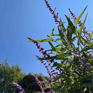 こんばんゎ☽︎︎.*·̩͙ 長く伸びた茎の先にまとまって、穂のようにお花が咲き始めてきました 横に傾いてしまうアメジストセージ