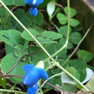 今日の出愛花💜💜 1㌢くらいの小さな青い花✨✨ 長い茎🌱の先に ちょっこん✨と一輪の集まり 可愛く咲いていました💕 あなた様ねのお名前は~~❔❔ 回答頂きました(^-^) エボルブルス《アメリカンブルー》 可愛い花🌼 花言葉は「あふれる思い💕」素敵です🎵