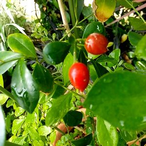 シルクジャスミン(ゲッキツ)💕 このところ、不調だったので秋に根詰まりかと思い 根をカットして、そのまま同じ鉢に植え直しました。 以前程ではないけど。赤い実が成りました❤ 木も大きくなって来たので、たくさんカットです。 また、たくさん咲いてくれるかな?