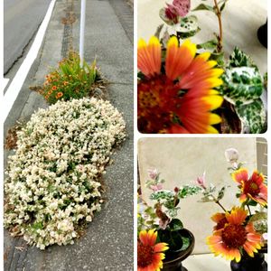 お久しぶりの投稿 路辺の 初雪かずらとガイラルディア 強くて増えてこんな感じ 摘んで お仏壇用に😍😍😍