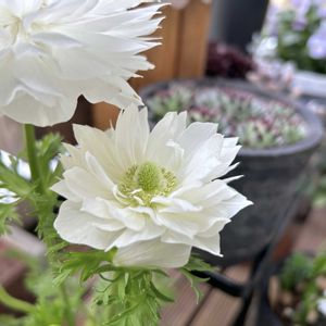 八重咲きアネモネ やっぱり白い凛々花ちゃんがすき♡ 中心がライムグリーンなのもすきデス
