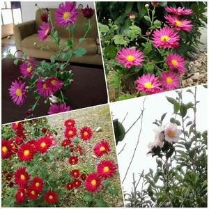 今日のお庭の様子💕 菊の花🌼 北東場所に初めて、もらった挿し木の菊の苗植えてたら、よく育ってくれました✌️ ↘庭木のお花🌼も咲き初めました〰️💕 最初蕾だけ見つけて、撮ってたら高い場所に咲いてました💦