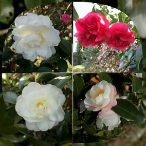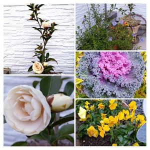 庭の山茶花がいつの間にかこんなに咲きました✨ スマホを向けながら、「え、、写真、、🖼どこを切りとったらいいの?」 あっちこっちを向きながら賑やかに咲いてます😃