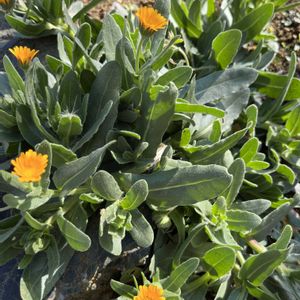 冬知らず 別名カレンデュラ キク科 原産地 地中海沿岸 名前の様に雪がかかっても咲いてます。☃️❄️ 11月頃から5月頃まで東北の花のない玄関先きで雪を被って咲いてます。🌼🌼🥰🤗 毎年種をこぼして咲き続け 失せる事ありませんね。💪🤗🎵