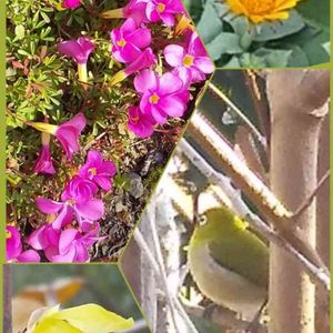 ↗🌱冬知らず🌱 ↘🐦️メジロ ↖🌱オキザリス🌱 グラブラ ↙🌱ロウバイ🌱 我が家の庭にて