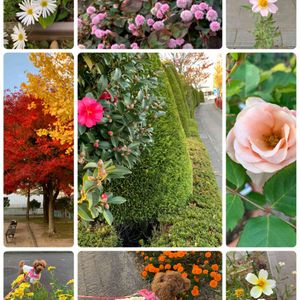🐾🐩お散歩コースと我が家の花壇🎶 自宅から少し離れた公園のモミジとイチョウ🍁綺麗~~~♡